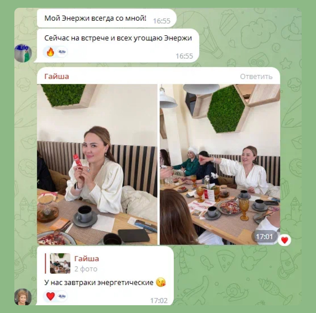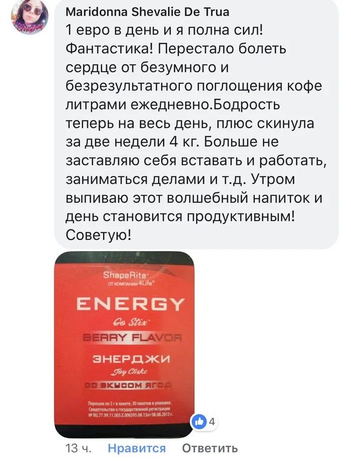 Хочу поделиться личным недавним результатом, того, как нас выручил пакетик Энерджи. Мелочь, а приятно, как говорится. В Рождественскую ночь получилось поспать всего часа 4,5. На следующий день, как известно, у нас был Крестный Ход с 13 до 16 часов. После того, как добрались домой, конечно, самый раз бы уже начать отдыхать, все-же более 10 км пешего хода! Однако, нас в гости ждали родственники, и мы не могли не пойти. И тут на помощь пришла наша палочка – выручалочка – продукт Энерджи. Разбавив один пакетик на 300 гр. мы с Каролиной выпили это, и, как говорят, усталость, как рукой сняло! Продолжали получать удовольствие от жизни и момента здесь и сейчас!