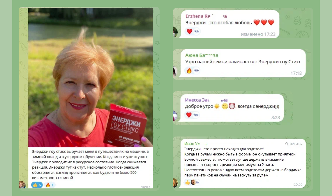 В течение 2 дней мы ехали на машине из Бургаса в Прагу. Мой муж по 8 часов, с небольшими остановками, все время был за рулем. Мы использовали Энерджи Гоу стикс. Благодаря этому напитку мы не чувствовали ни голода, ни усталости. Преодолели около 1700 км незаметно для себя. Сохранялась концентрация внимания, реакция и работоспособность. А также прекрасное настроение на протяжении всего пути! Энерджи оказался незаменимым помощником для тех, кто долгое время находится за рулем.
