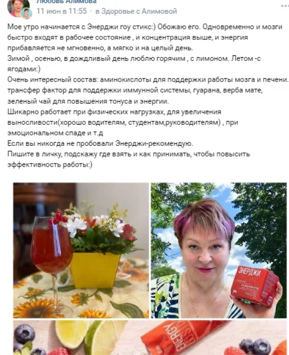 Не знаю как работают эти маленькие пилюльки, но реально работают)))))))) Лучше стала спать и легче просыпаться, в нашем жизненном ритме когда работа по сменам, учёба, занятие спортом- это как раз то, что нужно. Трансфер Фактор принимаю почти два года. А когда попробовала Энерджи Гоу Стикс, походы в тренажёрный зал стали ещё более в удовольствие (выносливость, меньше устаёшь, быстрее восстанавливаешься). Настоящий энергетик, ещё и вкусный, всем рекомендую попробовать