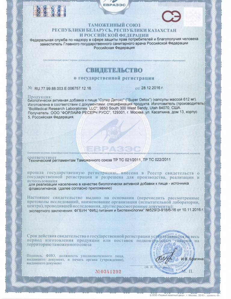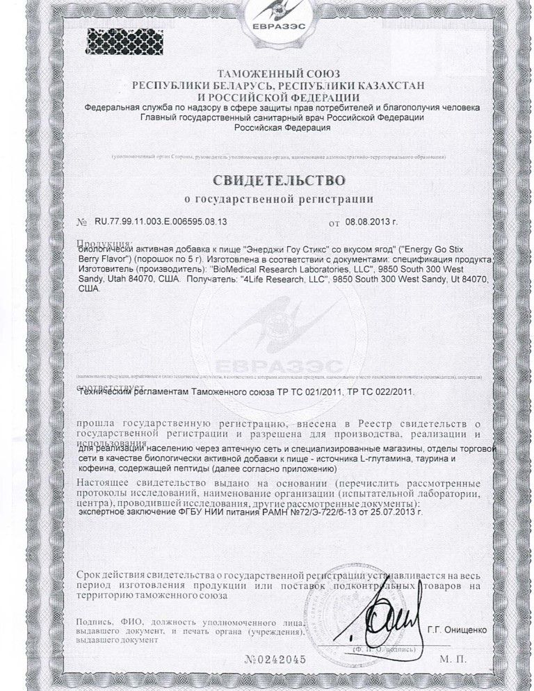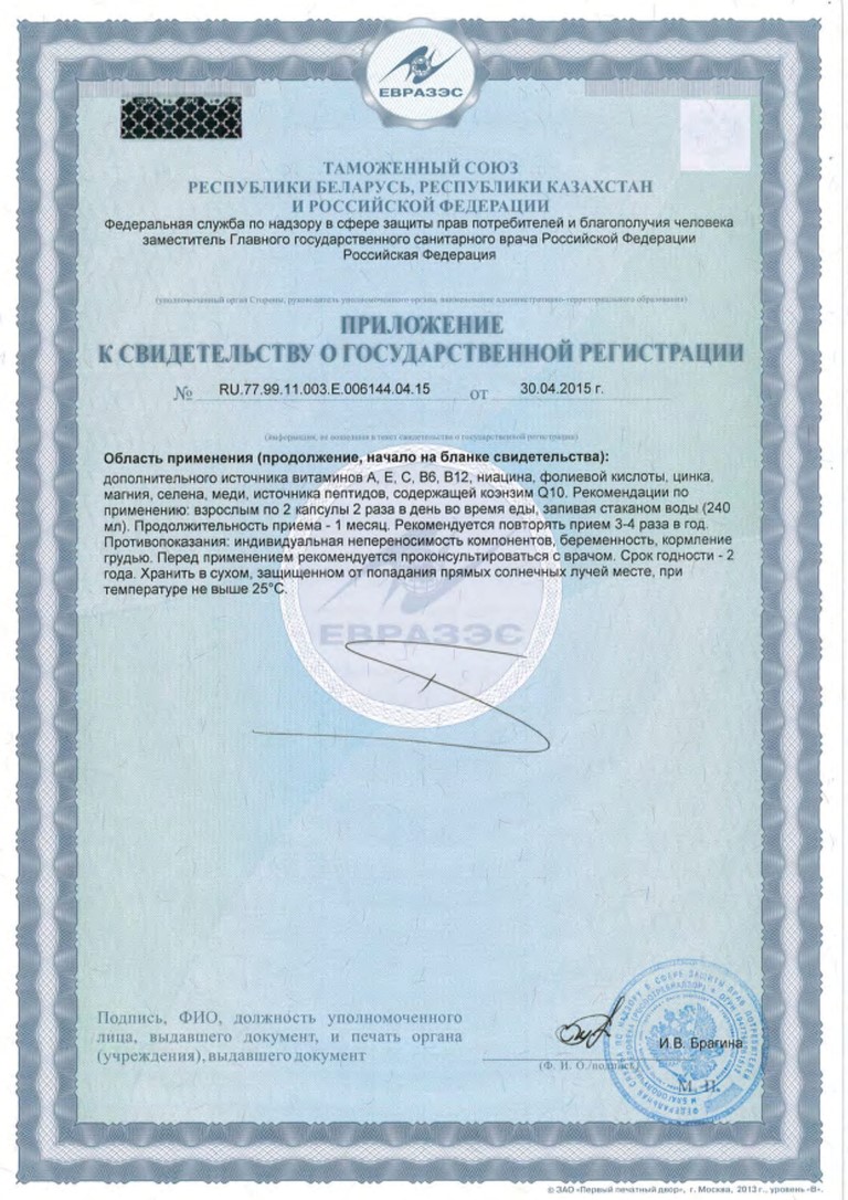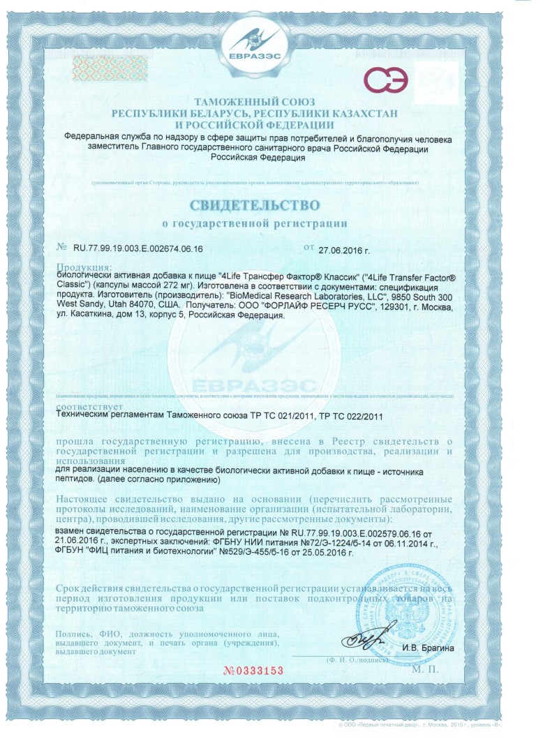 Патенты, Сертификаты, Экспертные Заключения и др. документация на продукцию 4Life Research:
